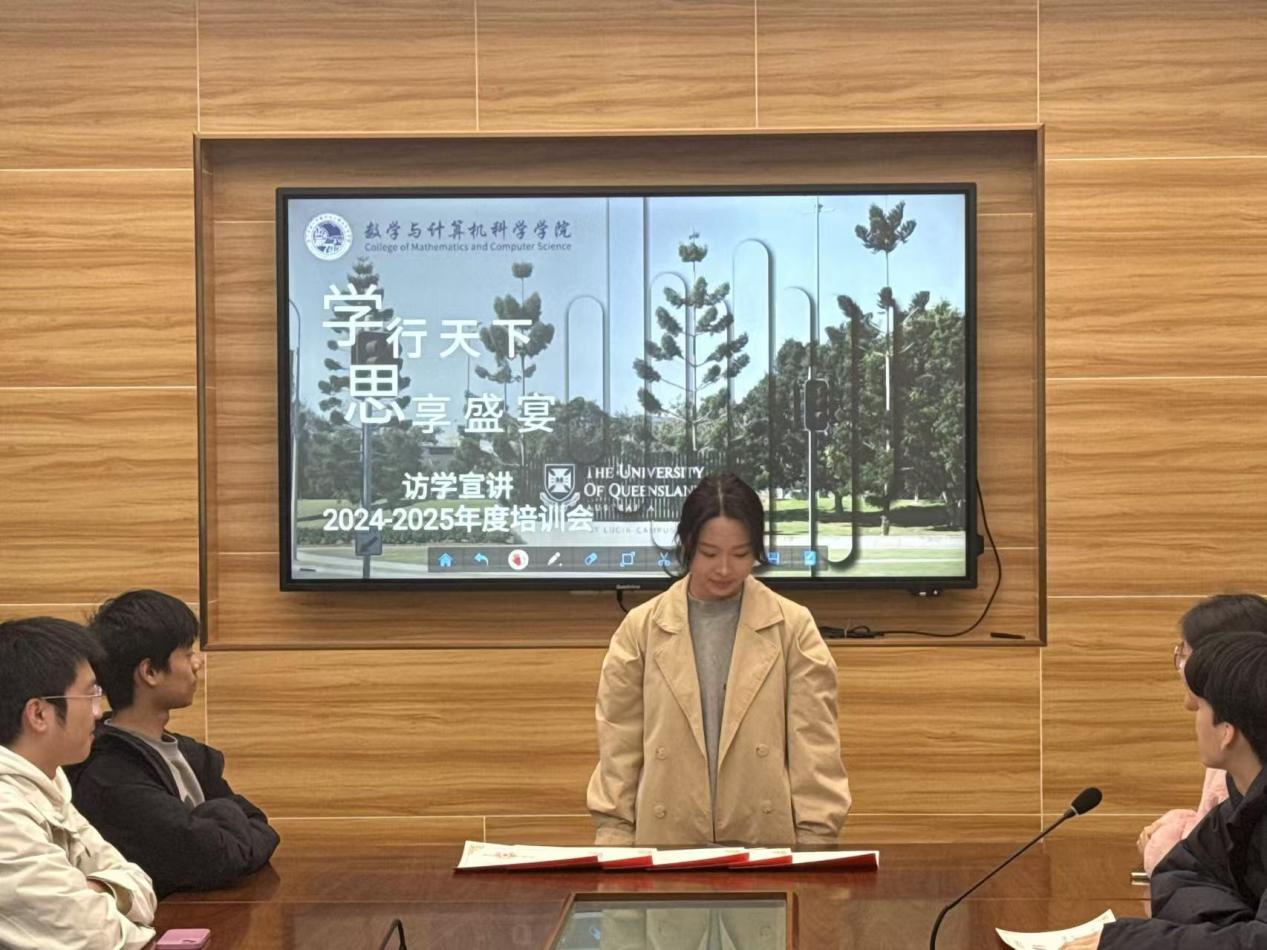 陈瑞珂围绕海外访学准备、访学课程安排、文化交流技巧等内容进行了专题培训讲座,帮助宣讲团成员提升综合素质,为即将开展的新生班级访学分享会做好准备。宣讲团成员代表将全力以赴,为学院学子带来真实的访学体验方向,促进学院学子国际化的视野拓展。