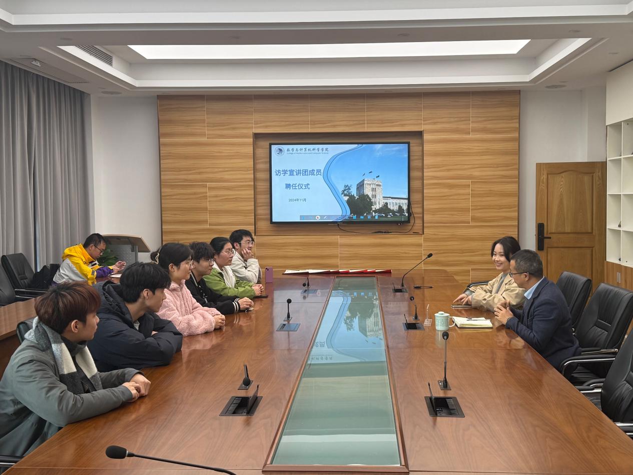 新葡的京集团8814于11月26日在学11-304成功举办了访学宣讲团2024-2025年度培训会议及成员聘任仪式。学院副院长张洪涛、辅导员陈瑞珂及访学宣讲团成员代表参加仪式,仪式由陈瑞珂主持。经过选拔,16名优秀学生被正式聘任为宣讲团成员。
