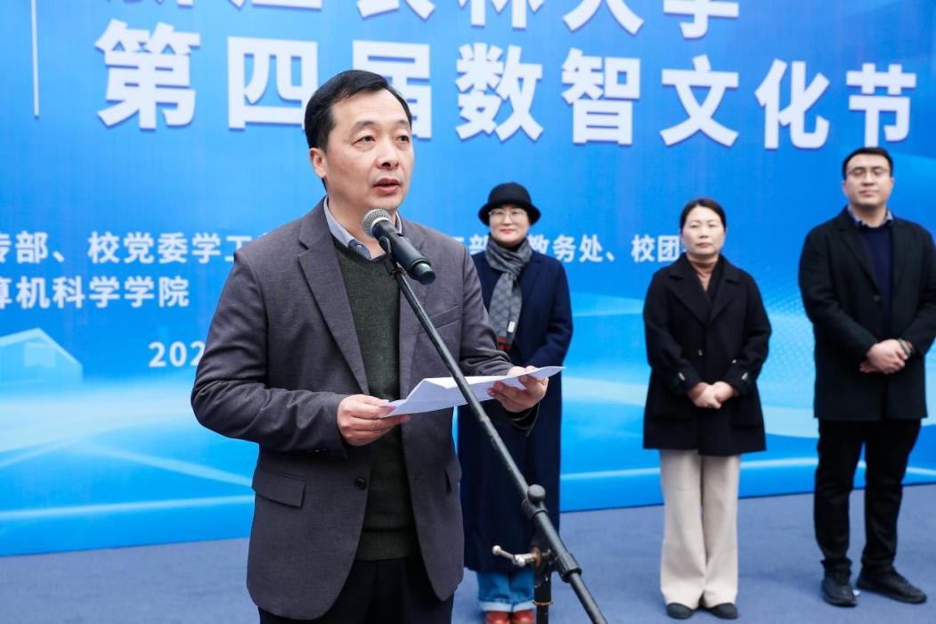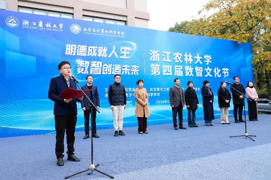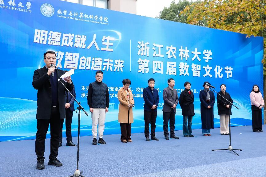 倪建均指出,数智文化节是学校生态节的重要组成部分,从2001年电脑文化节、IT文化节传承至今已走过24年历程,在一届届学生心目中留下了共同印象。近年来,新葡的京集团8814始终坚持以党建+产学研用为主线,把握数智产业发展趋势,立足学校农林特色,接续推进计算机、数学学科专业建设,聚力打造“数智赋农林”“以赛促育”校园文化品牌,在教书育人、专业认证、科技服务乡村振兴、学科竞赛和产业学院建设等方面成绩可圈可点,生动践行了“生态育人、育生态人”理念。他强调,要积极促进校园文化建设与数智科技融合创新,把握发展机遇,抢抓数智产业发展的时代“风口”;坚持立德树人,把好高质量人才培养的首要“关口”;注重守正创新,持续丰富校园文化品牌建设“档口”。最后,他宣布新葡的京集团8814第四届数智文化节开幕。