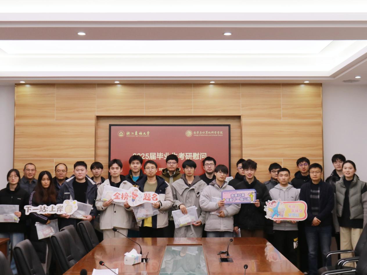 随后,学院领导与同学们一一握手,送上考研慰问礼包并合影留念。