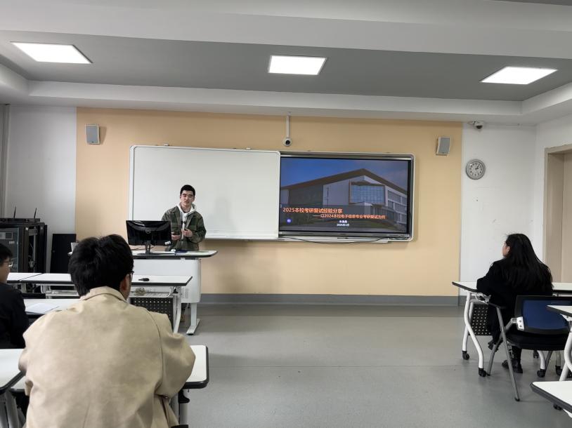 分享过程中,两名校友分别围绕考前准备、复试流程、复试注意事项等方面展开分享,为同学们讲解了怎样把握复试要求和复试信息、如何从材料准备中突出个人优势,以及自我介绍过程中的表达技巧与潜在雷点。在互动环节,同学就“复习计划”、“面试礼仪”等方面提出疑问,校友们根据个人经验给予一一解答。未来,学院将根据情况有针对性地组织系列辅导活动,为考研学子提供助力支持。