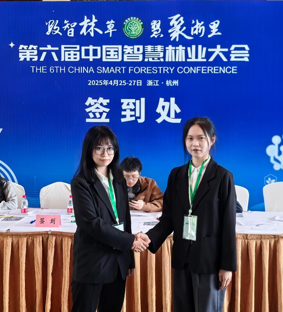 在为期三天的大会中,佩戴绿色工作证的志愿者们始终活跃在服务一线,将浙农林大学子的专业素养与青春活力完美呈现。他们以真诚的态度和实际行动诠释“奉献、友爱、互助、进步”的志愿精神,延续了我校志愿服务优良传统。