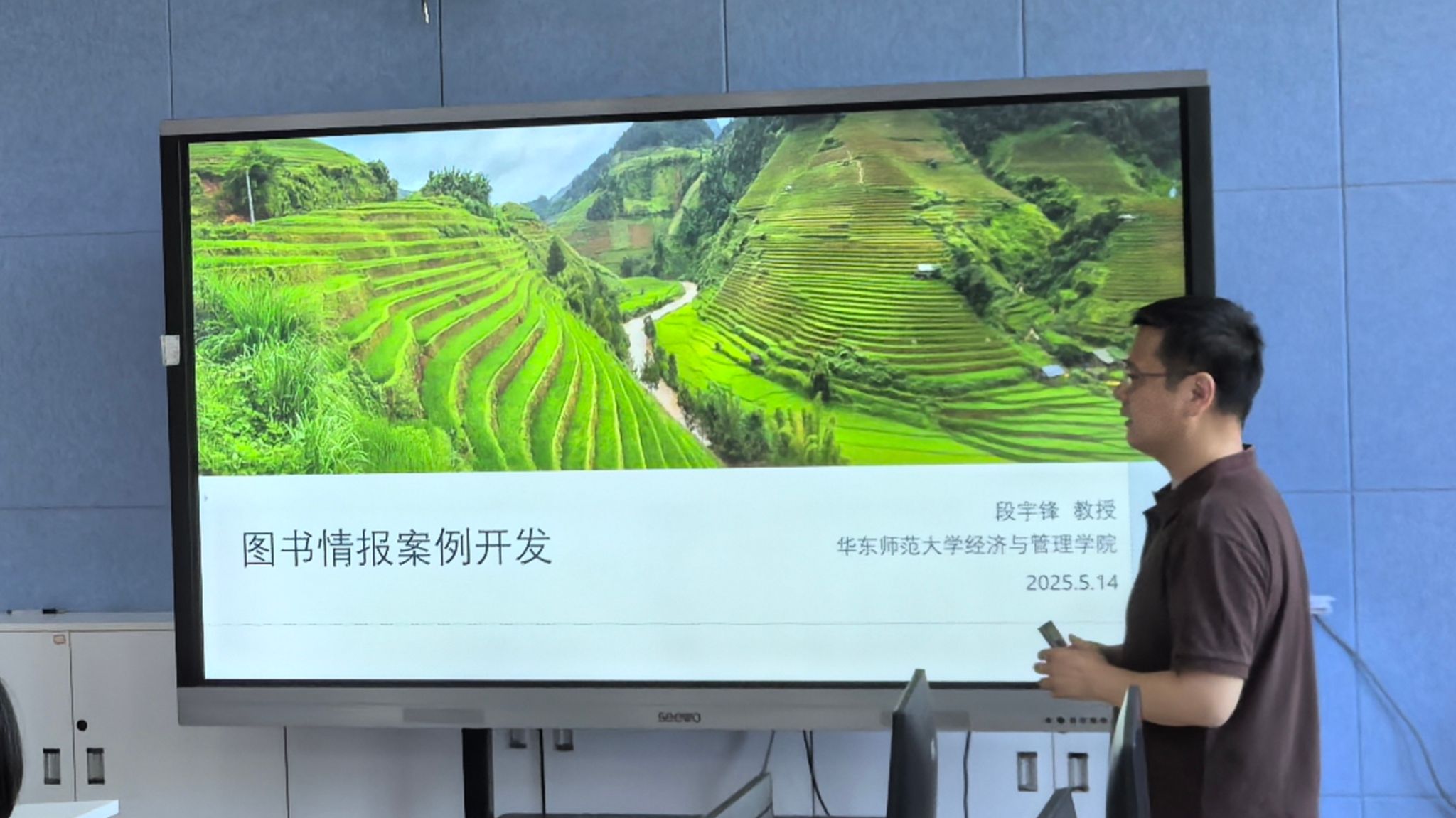 2025年5月14日下午,全国图书情报专业学位研究生教育指导委员会委员、华东师范大学经济与管理学部段宇锋教授应邀作客新葡的京集团8814“零壹讲坛”,为师生们带来了一场题为《图书情报案例开发》学术报告。