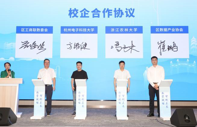 冯海林院长代表学院与临安区数字经济产业联盟签署合作协议。通过共建学院临安区数字经济产业联盟,深度参与临安数字经济的“产业生态圈”,进一步推动学院产学研一体化发展,为高素质人才培养、引进以及毕业生实习、就业开辟更广阔渠道,实现人才供给与技术需求双向互补。